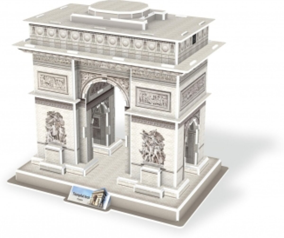 Le coffret permet de réaliser une reproduction de l’Arc de Triomphe en carton mousse, sans colle ni ciseaux. Le modèle final mesure 22 x 20 x 16 cm et se compose de 54 pièces à assembler par emboîtement.