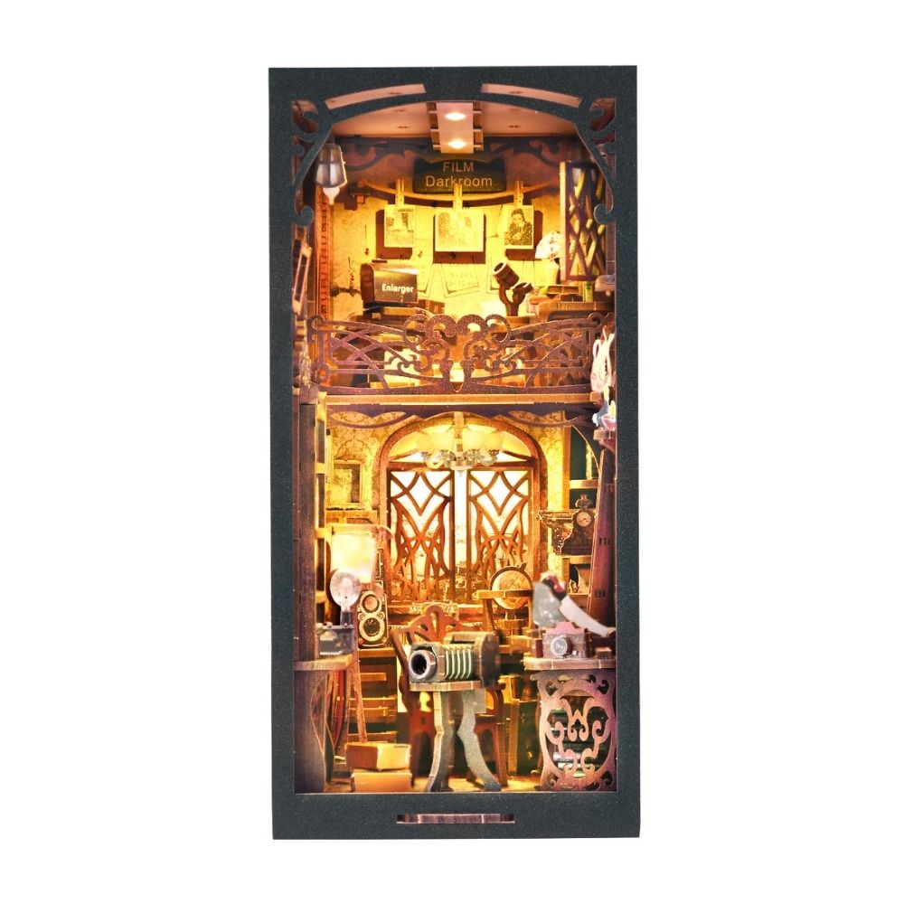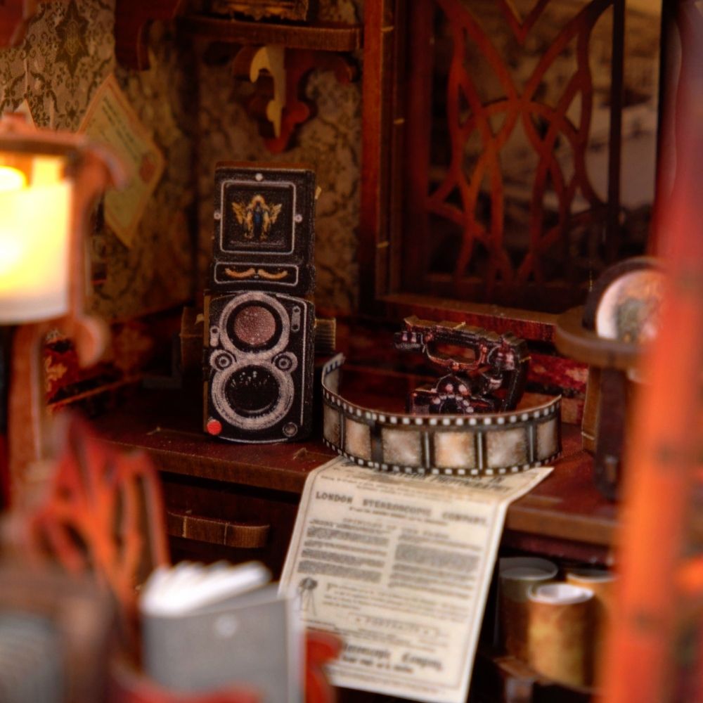 Imaginez une petite pièce feutrée, baignée d’une lumière douce, où s’alignent appareils photo anciens, bobines et tirages suspendus. Avec le Book Nook La Chambre Noire, votre bibliothèque se transforme en décor vivant, plein de mystère et de nostalgie.
