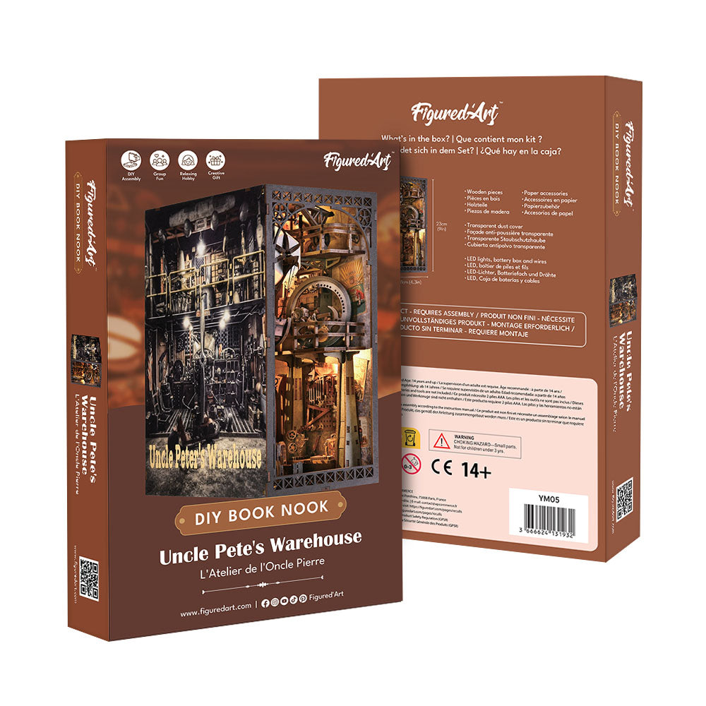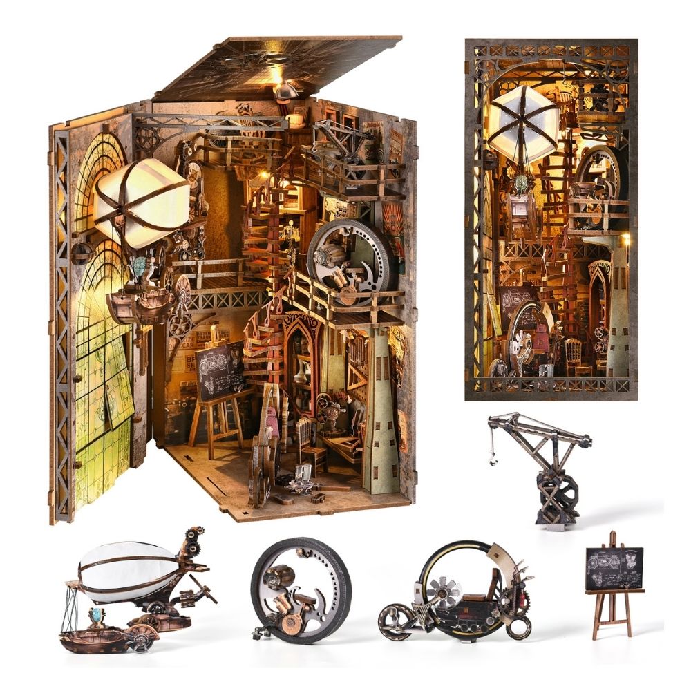 Book Nook – L’Atelier de l’Oncle Pierre vous invite à glisser un atelier rétro en miniature au cœur de votre bibliothèque. Engrenages, outils et lumière chaleureuse prennent vie pour un décor qui attire l’œil et nourrit l’imaginaire.