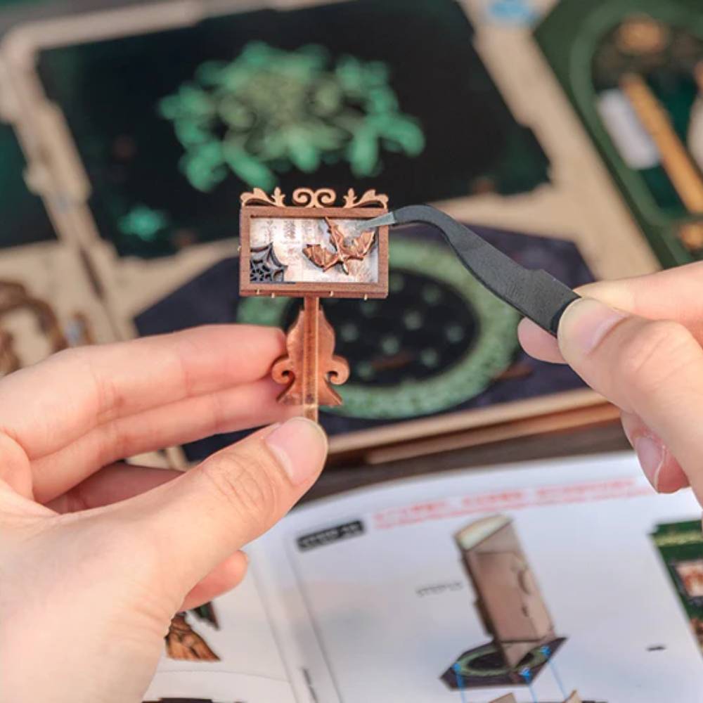 Chaque étape vous plonge dans un moment créatif à la maison. Vous assemblez, vous ajustez, vous voyez la scène prendre forme. Et quand la lumière s’allume, la satisfaction est immédiate : c’est votre décor miniature, unique, prêt à être exposé avec fierté. Et bientôt, vous pourrez dire : C’est moi qui l’ai fait.