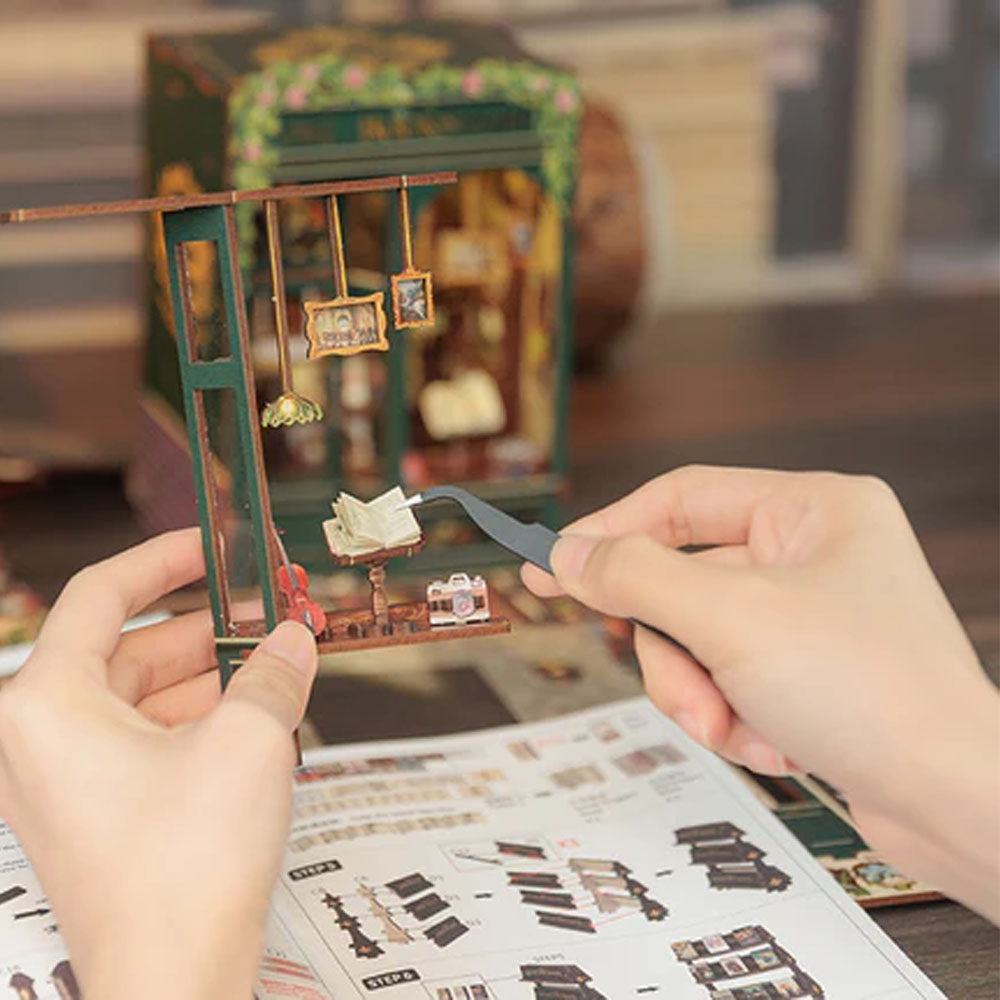 Entre deux romans, une lueur douce apparaît. Vous découvrez la Librairie des Hiboux, un book nook inspiré d’une boutique ancienne, avec ses étagères en bois, ses livres miniatures et son atmosphère feutrée. Chaque détail prend vie sous vos doigts, tranquillement, chez vous.
