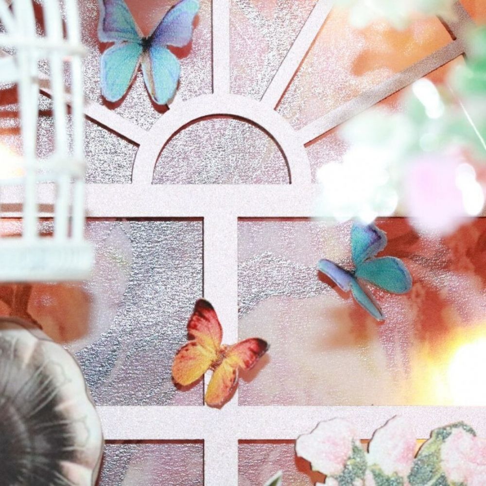 Entre deux romans, une lumière douce apparaît. Vous découvrez une petite serre hors du temps : des fleurs délicates, une chaise élégante, un paon blanc immobile comme dans un rêve. Ce book nook transforme votre étagère en scène vivante et invite à ralentir, le temps d’un moment créatif à la maison.