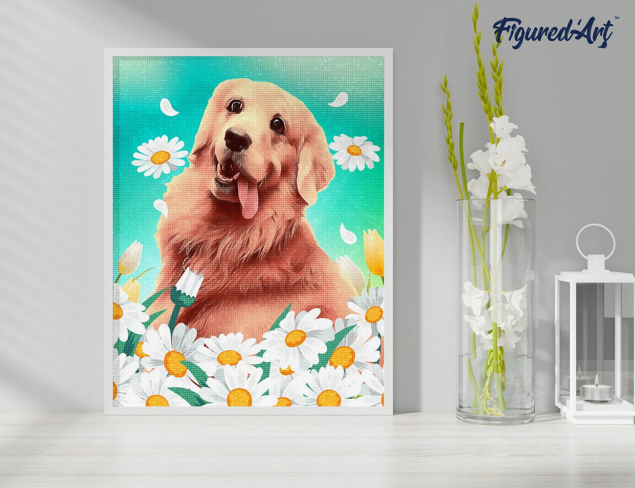 Imaginez une fin d’après‑midi calme, la toile posée devant vous, les petits diamants qui scintillent sous la lumière. Peu à peu, le Golden Retriever apparaît, expressif et chaleureux, symbole de douceur et de fidélité.