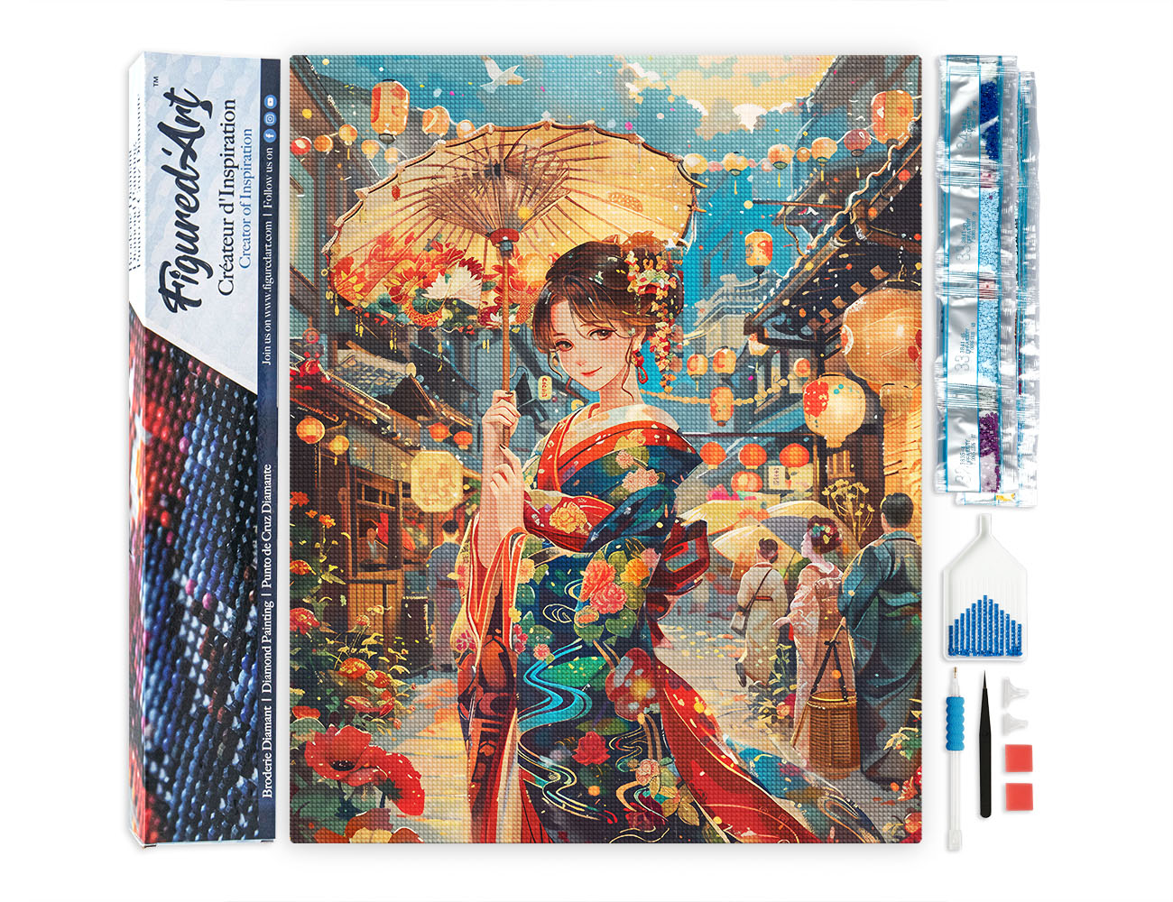 Broderie Diamant - Jeune Fille en Kimono au Festival des Lanternes
