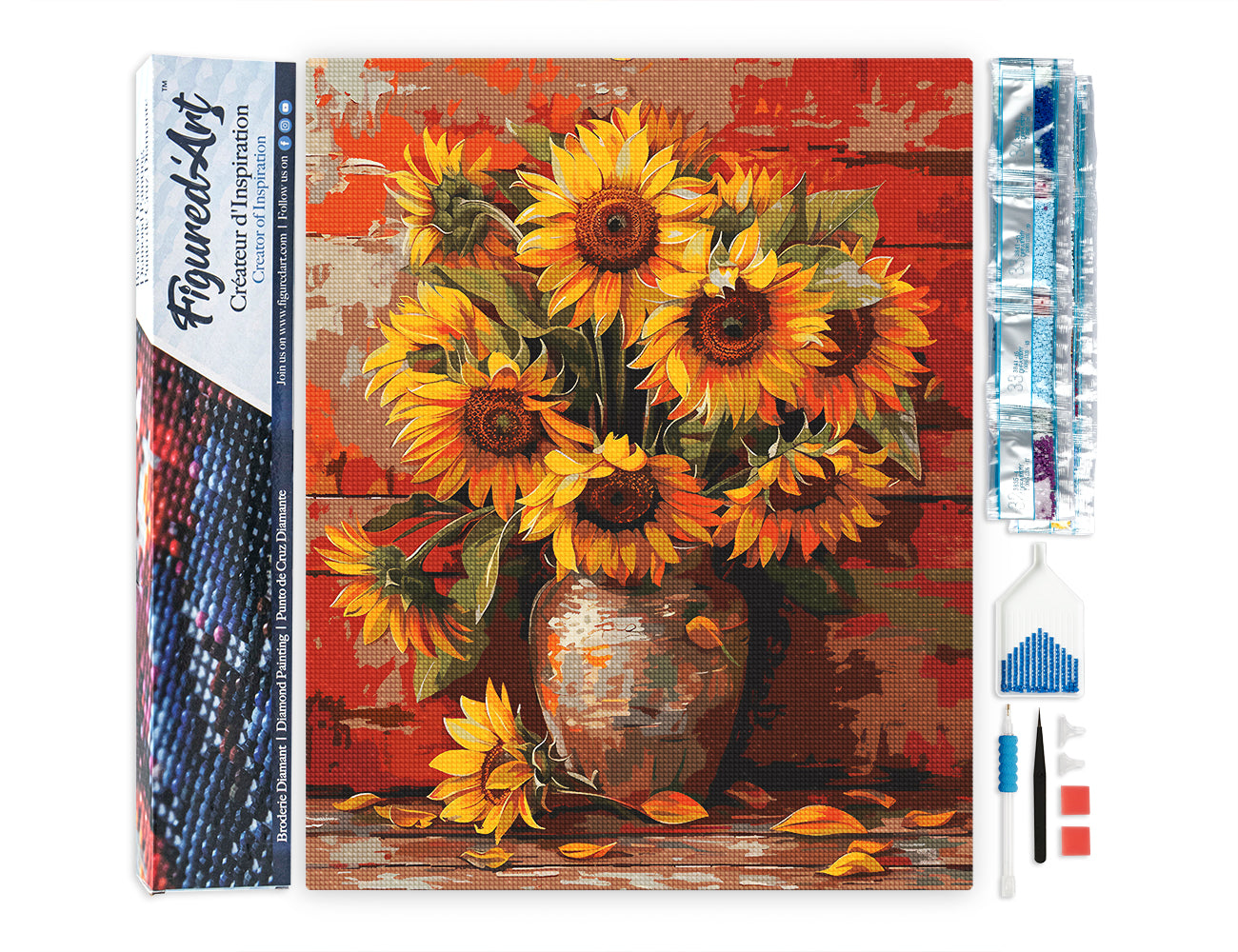 Broderie Diamant - Vase de tournesols automnal Broderie Diamant - Vase de tournesols automnal