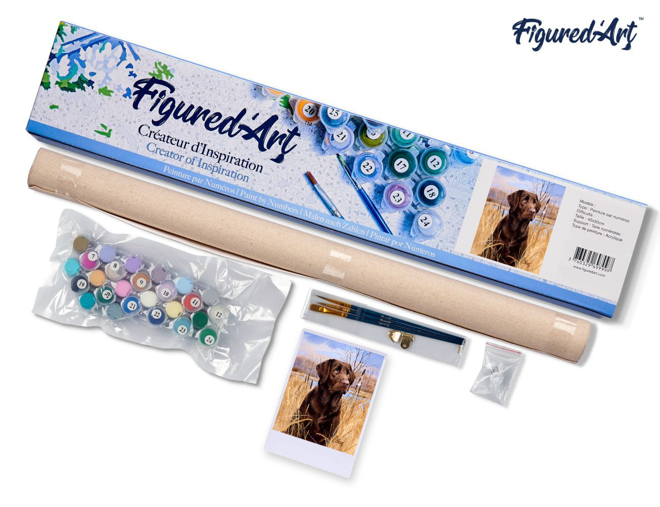 Vous déroulez la toile, posez les pots, et le Labrador prend vie sous vos pinceaux. La peinture par numéros transforme chaque zone en une étape claire, rassurante, presque méditative. Le pelage se précise, le regard s’adoucit, et la scène s’installe tranquillement dans votre salon.