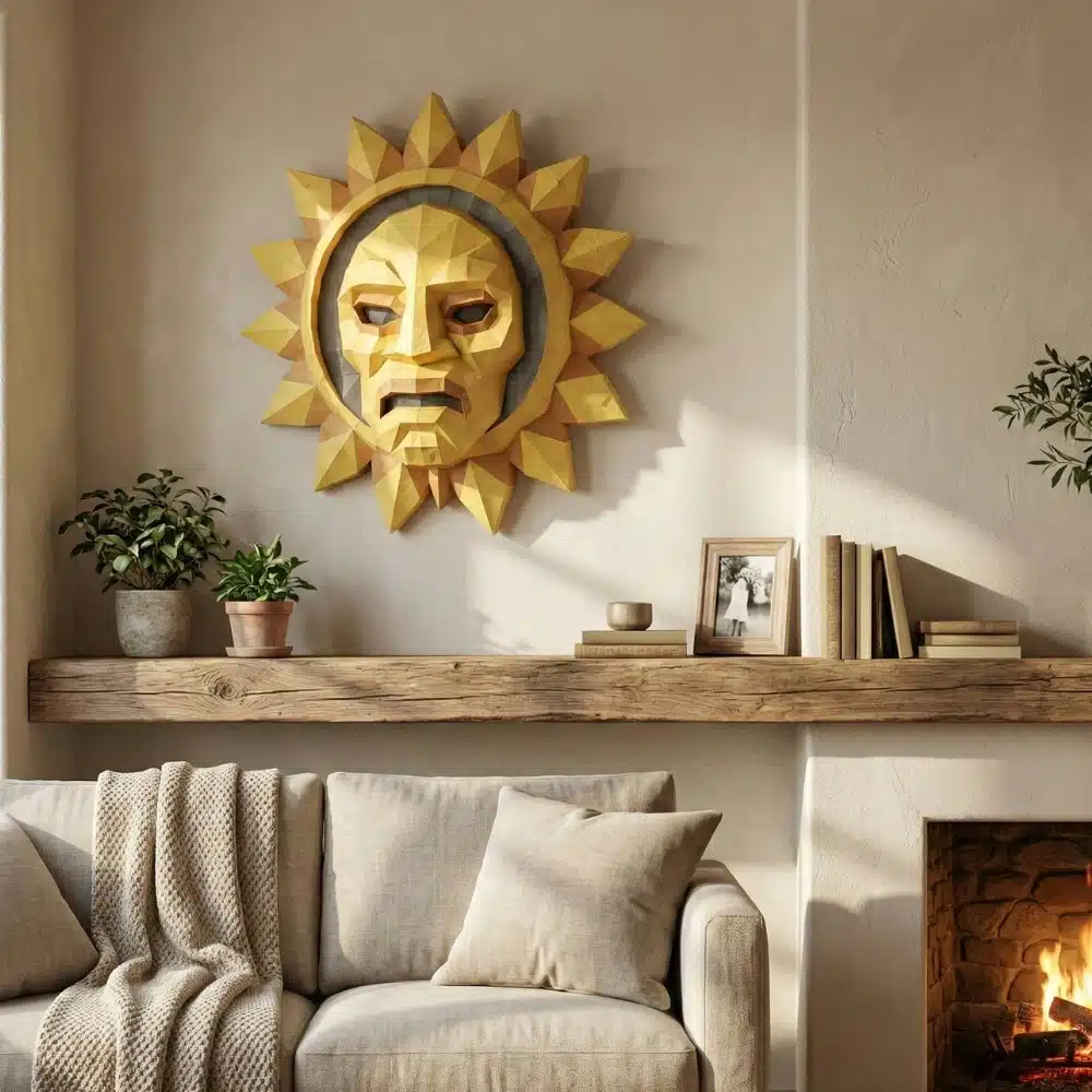 Ouvrir le fichier, poser les premières feuilles, voir le visage apparaître… Le Masque Totem Soleil transforme un moment créatif en véritable rituel. Peu à peu, l’astre prend forme, avec son regard calme et sa couronne de rayons géométriques qui accrochent la lumière.