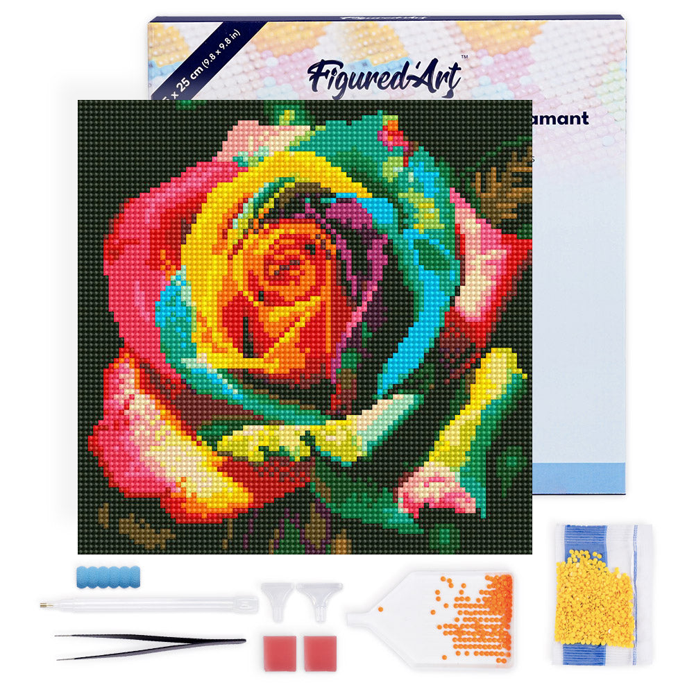 Mini Diamond Painting 25x25cm avec cadre - Rose Multicolore Mini Diamond Painting 25x25cm avec cadre - Rose Multicolore