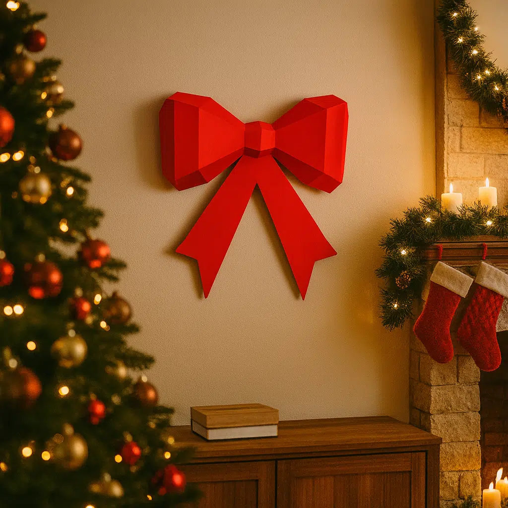 Ce nœud rouge mural apporte instantanément du caractère à votre intérieur. Accroché au mur, il joue avec la lumière et les ombres grâce à ses facettes nettes, pour un rendu à la fois graphique et chaleureux.