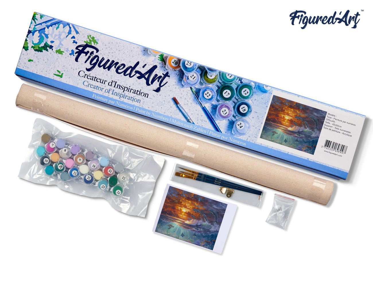 Ce kit de peinture par numéros est conçu pour vous accompagner de bout en bout. Il comprend une toile en lin numérotée de 40 x 50 cm, des peintures acryliques numérotées, trois pinceaux en nylon de tailles différentes, une photo miniature du modèle, ainsi que le nécessaire pour la fixation murale.
