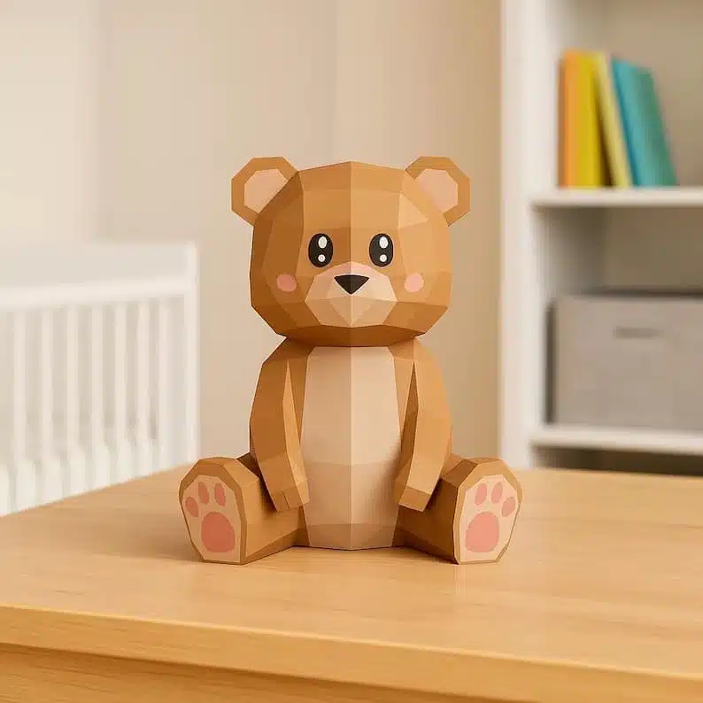 Dès les premières pièces assemblées, cet ourson en papercraft 3D installe une atmosphère douce. Sa posture tranquille et ses formes arrondies invitent à ralentir, à se concentrer, puis à savourer le moment où tout s’assemble enfin.