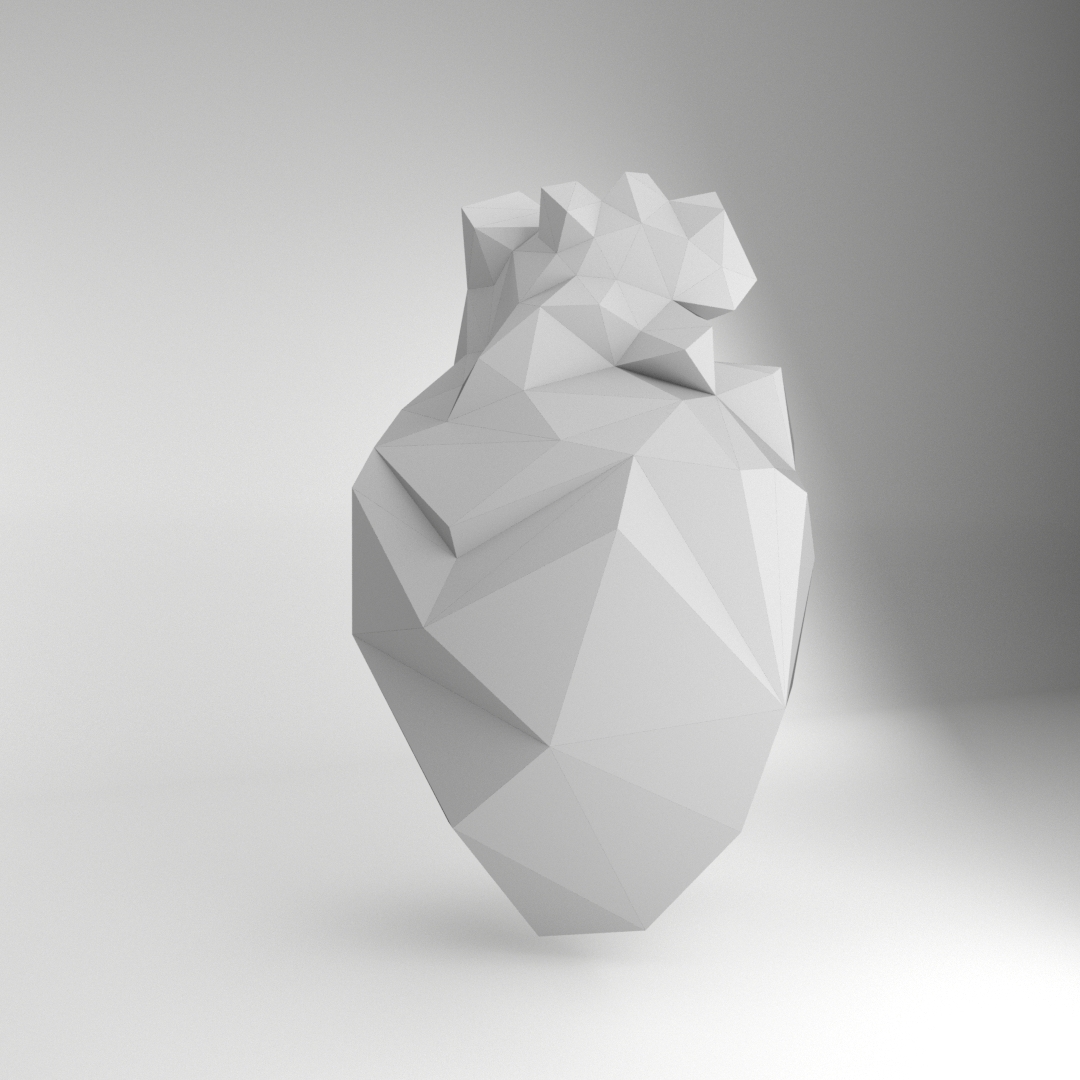 Un cœur figé dans la glace, net et facetté, comme sculpté par le froid. Ce papercraft 3D joue avec la lumière : chaque pli accroche le regard, chaque face affirme son caractère graphique.