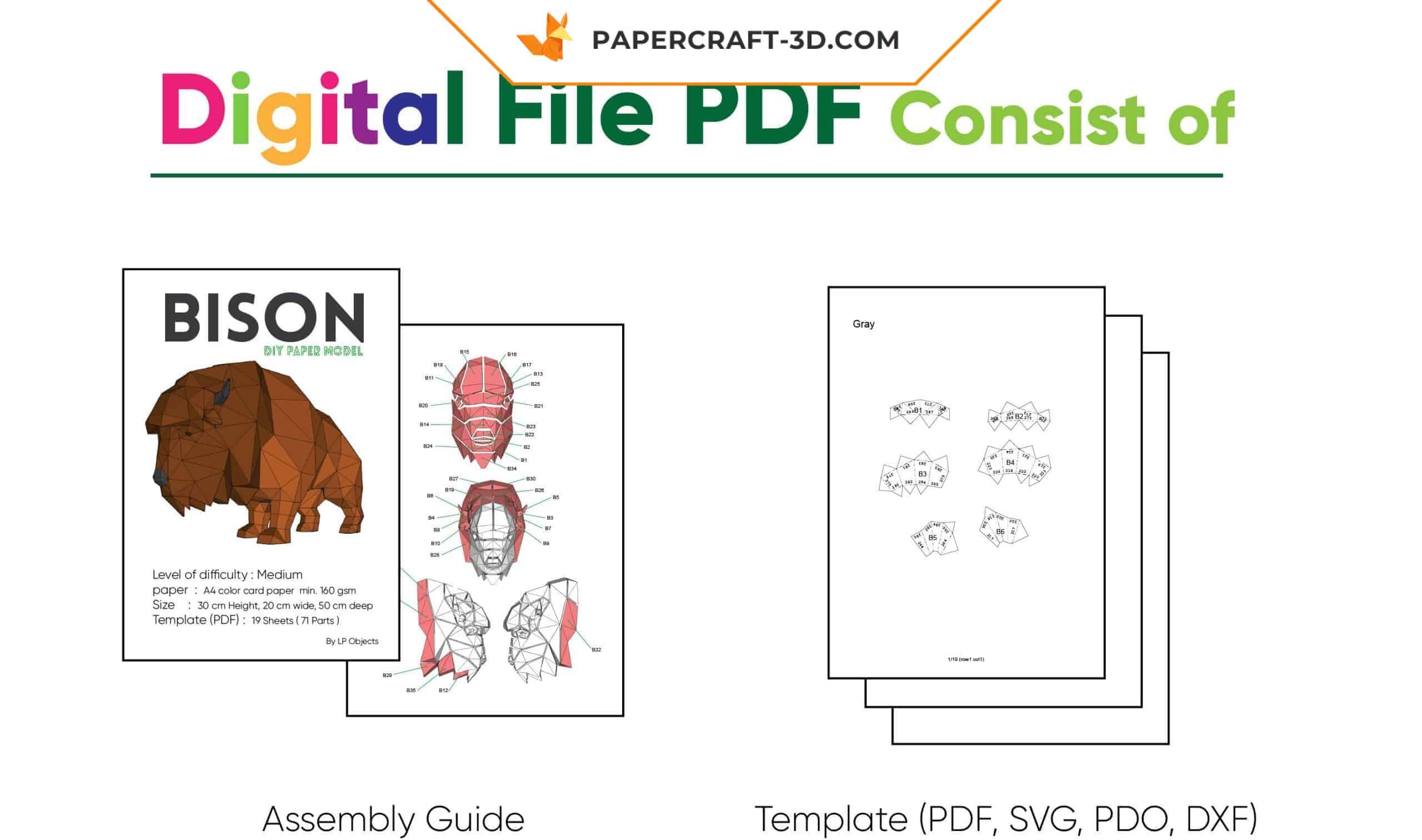 Massif. Calme. Impressionnant. Ce bison en papercraft 3D semble surgir des grandes plaines et s’installer chez vous. Au fil des pliages, sa silhouette géométrique prend du volume et révèle une sculpture en papier au caractère bien trempé.