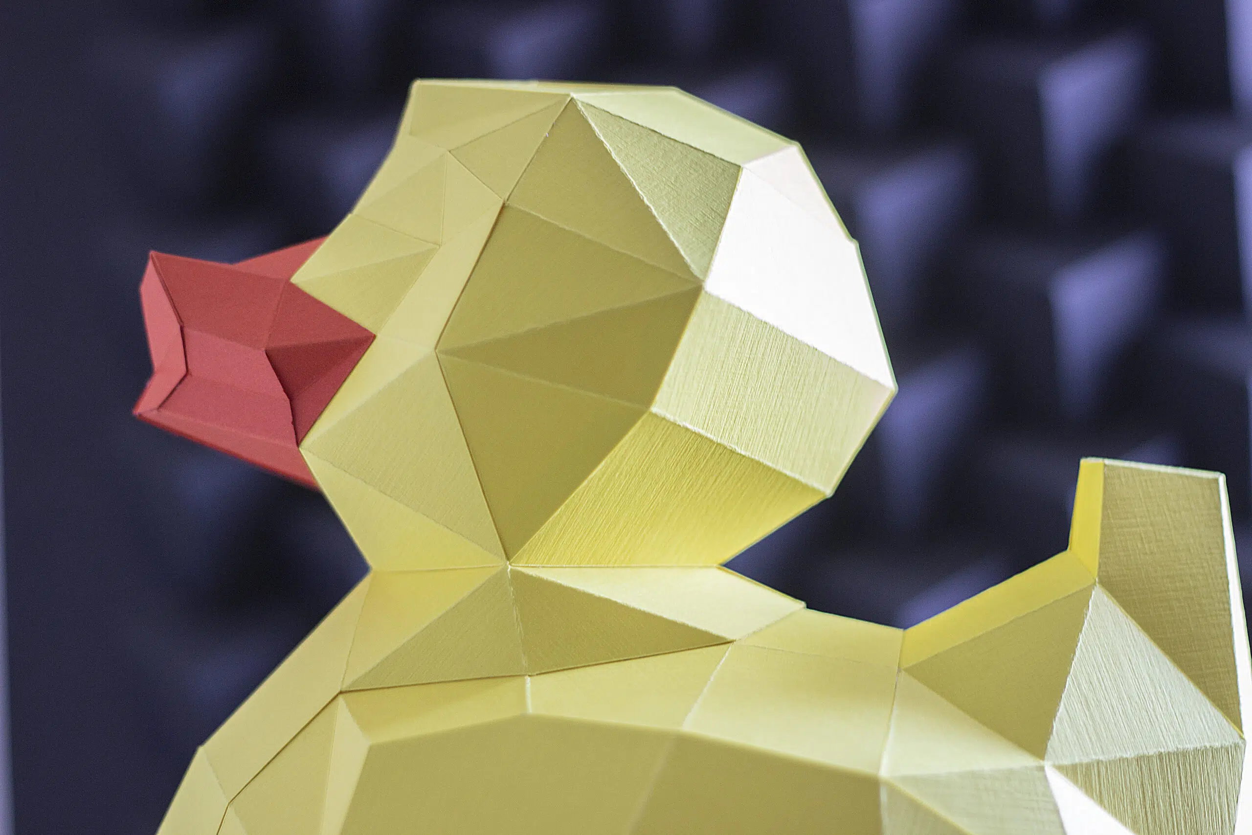 Au début, ce ne sont que des formes. Puis les volumes s’installent, les angles se répondent, et le canard apparaît. Ce papercraft 3D joue avec une esthétique franche et joyeuse, parfaite pour réveiller une étagère, un bureau ou un coin créatif.