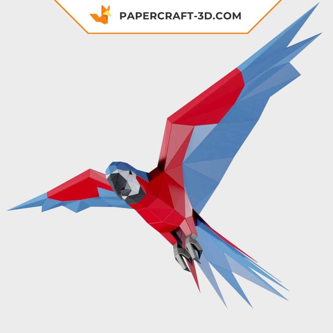 Une fois terminé, le perroquet affiche 350 mm de hauteur, 520 mm de largeur et 720 mm de profondeur. Il est composé de 55 pièces réparties sur 14 feuilles, pour un rendu riche en volumes et en détails.