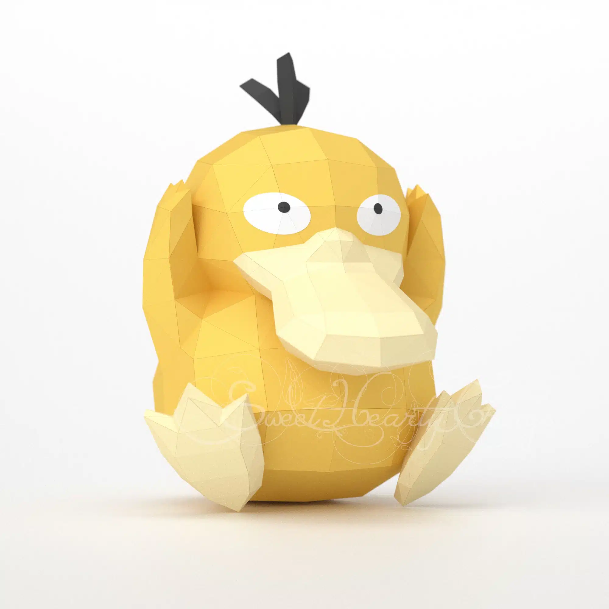 Une fois assemblé, Psykokwak affiche de belles proportions : 340 mm de hauteur, 280 mm de largeur et 330 mm de profondeur. Le patron est proposé en deux versions complémentaires : 10 feuilles imprimées en version colorée ou 12 feuilles sans remplissage pour laisser parler votre créativité.