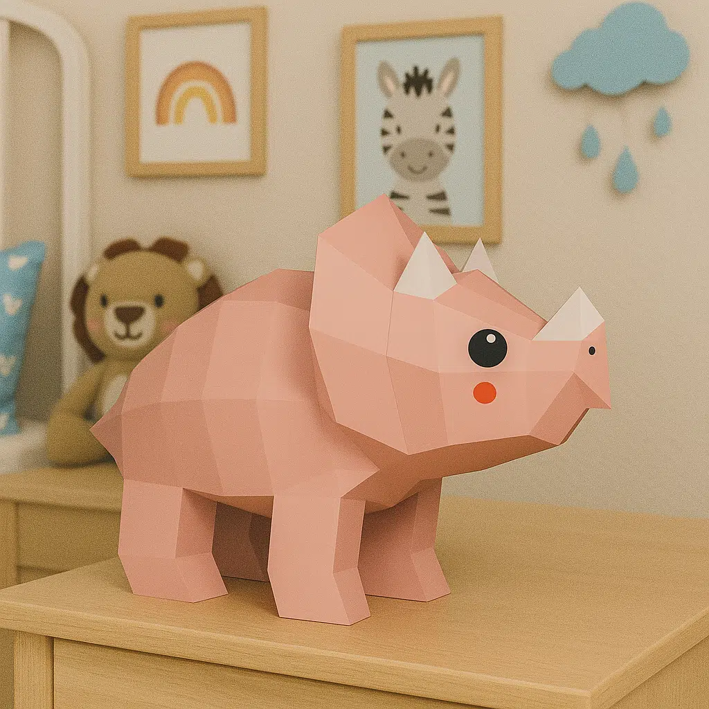 Trois cornes, une collerette marquée, une silhouette immédiatement reconnaissable. Ce tricératops en papercraft 3D raconte une histoire que vous construisez vous-même, tranquillement, à votre rythme.