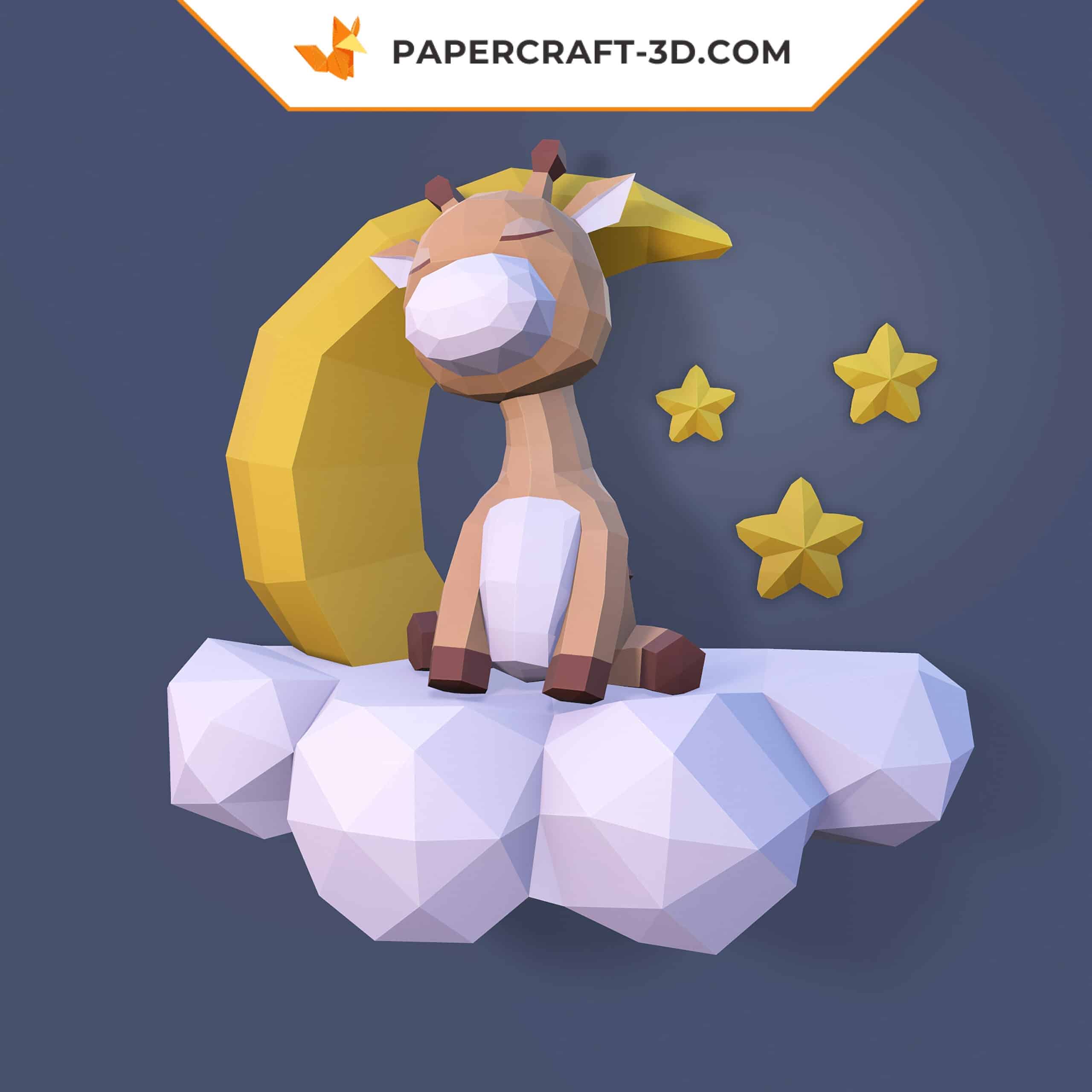 Une fois assemblée, la scène complète mesure 391 mm de hauteur, 610 mm de largeur et 260 mm de profondeur. Le modèle est construit à partir de 42 feuilles réparties entre la girafe, le nuage, la lune et les étoiles.