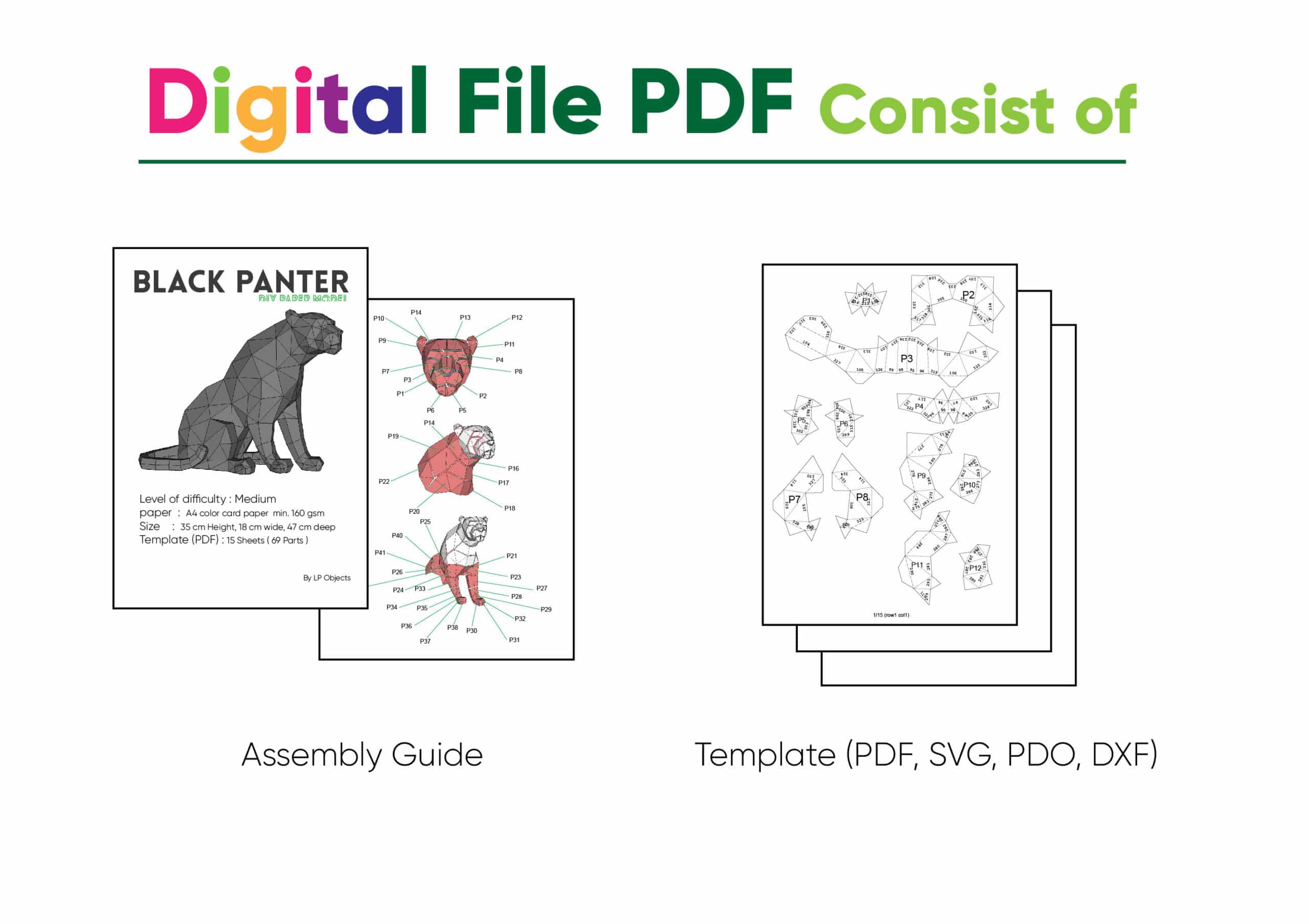 Silencieuse, posée, presque hypnotique. Cette panthère noire assise en papercraft 3D observe l’espace avec calme et assurance. À mesure que vous assemblez les pièces, sa silhouette féline se révèle, précise, élégante, profondément moderne.