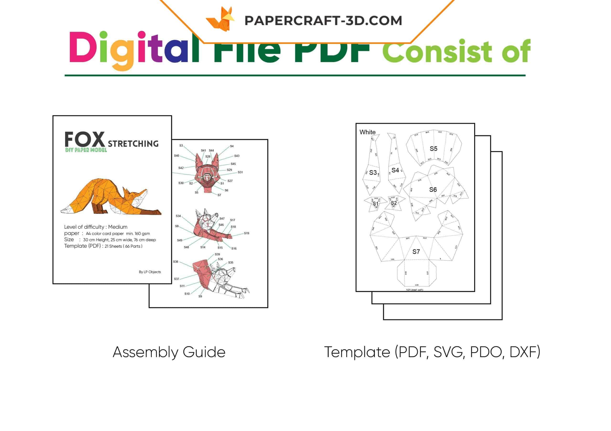 Le dos s’arque, les pattes s’allongent, le mouvement est suspendu. Ce papercraft 3D capture l’instant précis où le renard s’étire, avec une élégance presque vivante. À mesure que vous assemblez les pièces, la forme s’impose et la fierté monte.