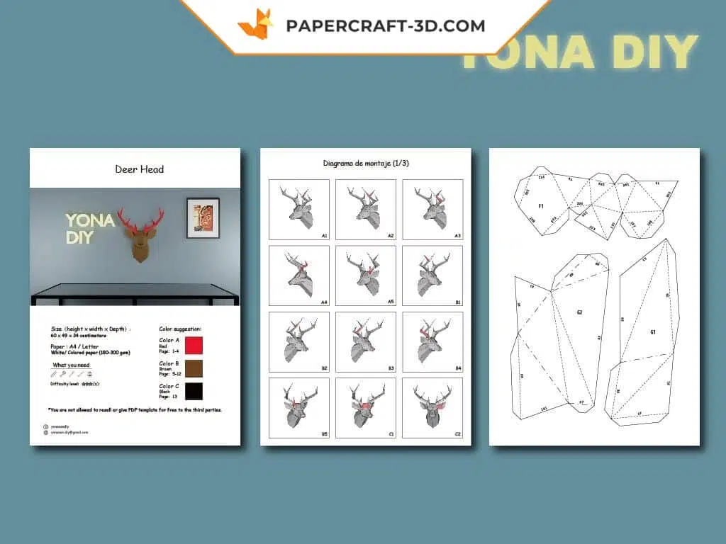 On commence avec quelques feuilles. Puis les volumes apparaissent, les lignes se tendent, la tête de cerf prend vie. Ce papercraft 3D joue avec la géométrie pour installer une ambiance calme et affirmée, inspirée de la forêt et des grands espaces.