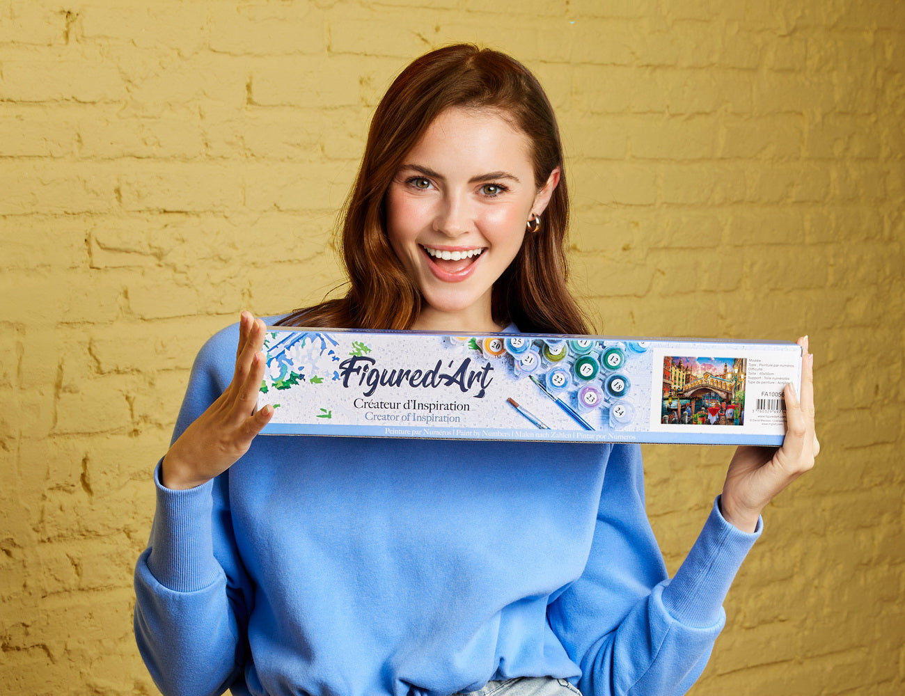 Ce kit de peinture par numéros est fourni avec une toile en lin numérotée de 40 x 50 cm, des pots de peinture acrylique numérotés et trois pinceaux de tailles différentes en nylon. Une photo miniature de l’œuvre sert de guide visuel, et deux vis avec deux crochets sont inclus pour l’accrochage.