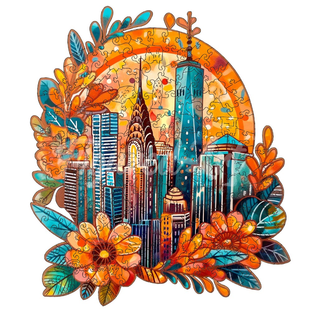 Installez-vous, ouvrez le coffret et laissez le Puzzle prendre vie. Les pièces en bois s’emboîtent avec précision, révélant peu à peu un paysage urbain floral plein de détails. On avance sans se presser, porté par les formes originales et les couleurs.