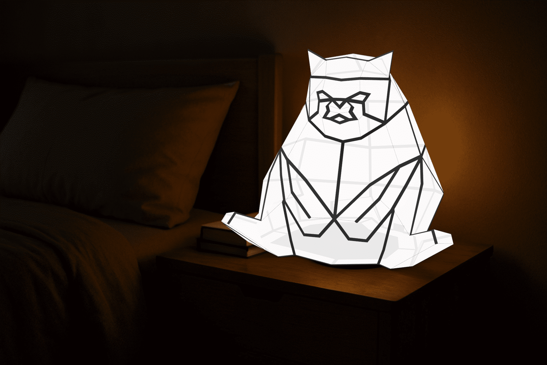 Silencieux et posé, ce chat géométrique s’invite dans la pièce avec douceur. De jour, ses facettes jouent avec la lumière et attirent l’œil. Le soir, il diffuse un halo calme, idéal pour lire, se rassurer ou ralentir le rythme.