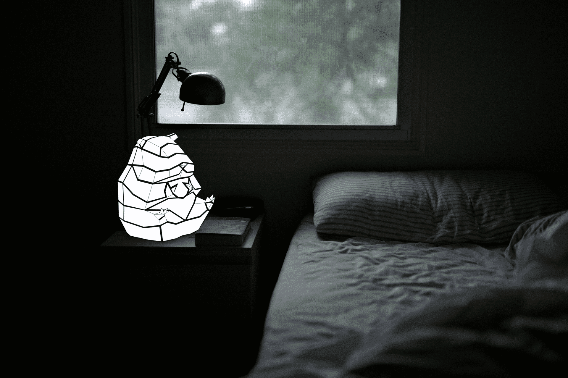 Éteinte, la veilleuse reste un bel objet déco. Son esprit graphique apporte une touche contemporaine à la maison, tout en conservant ce charme fait main propre au papercraft 3D.